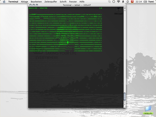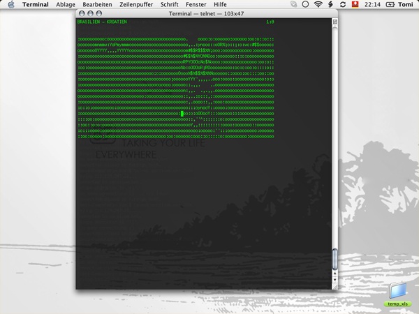 Einmal ist es mir sogar gelungen, ein Spiel (Brasil-Croatia) via ASCII-WM zu schauen.