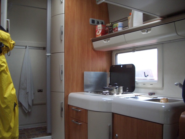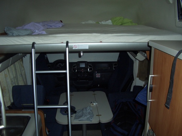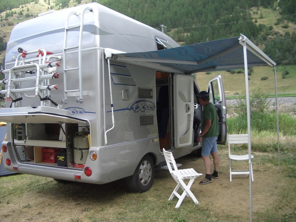 All diese Kriterien erfüllt der Exsis voll und ganz. Was mir sehr gut gefallen hat, ist das enorme Raumgefühl; sozusagen aussen klein, innen fein. Ob beim kochen in der vor Ablagefächern strotzenden Küche, beim Essen am gemütlichen, klappbaren Tisch oder beim Schlafen im riesigen (2.20m x 1.60m) Bett. Überall hab ich mich wohl gefühlt, sogar beim fahren. Hatte ich doch zu Beginn etwas Bedenken wegen der Höhe von 3.05m und demzufolge höheren Schwerpunkt. Aber von schaukeln keine Anzeichen. Der Exsis hielt tapfer die Spur, sogar bei schnell gefahrenen Passstrassen. 🙂
