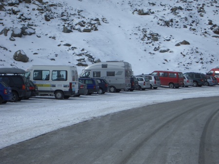 Aber der Reihe nach. Am Freitag gegen halb sieben fuhr ich mit vollen Tanks von Zuhause weg. Mein Ziel: Feichten im Kaunertal. Die Fahrt verlief ruhig und ich war sogar eher am Ziel als geplant. Einen Schlafplatz fand ich gleich an der Hauptstrasse. Nachdem die Heizung eingeschaltet und der Kühlschrank auf Gasbetrieb umgeschaltet war, göhnte ich mir noch ein zwei Bierchen in der Pfiff Alm. Dort traf ich auch noch ein paar Bekannte Gesichter vom letzten Jahr.
