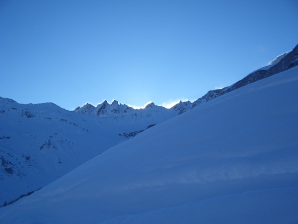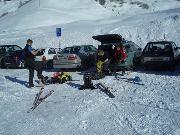 Am Abend hat mir ein Kollege per SMS dann das Tourenziel für den Sonntag bekannt gegeben und so fuhr ich los nach St. Antönien. Am Sonntag Morgen traf ich dann meine Kollegen vom Telemark-Toggenburg. Zusammen bestiegen wir, bei traumhaften Verhältnissen den Eggberg. Die Abfahrt in feinstem Swiss-Powder war Genuss pur.