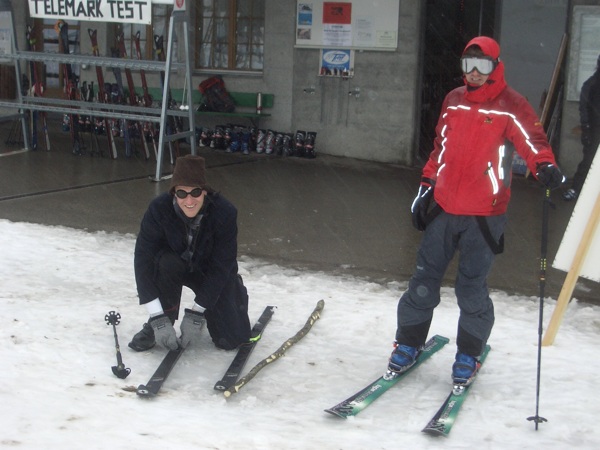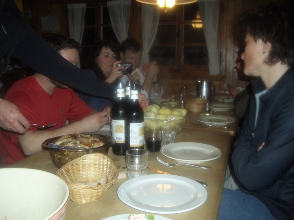 Old- and New-StyleMit den ersten vier „Teleschnuppis“ machte ich im strömenden Regen ein paar Abfahrten. Nach einer knappen Stunde und tropfnass von aussen war dann aber doch ein Kaffee fällig. Leider wurde das Wetter nicht besser, so dass nur noch weitere sieben Personen das Gratis Telemark-Angebot ausprobierten. Zu unserem Pech fiel dann auch noch der Schlepplift, aufgrund eines raus gesprungenen Seils aus. So mussten wir zu Hütte laufen, was aber im Nachhinein nicht weiter schlimm war. In der Hütte gabs dann ein vorzügliches Abendessen gekocht von Tine.